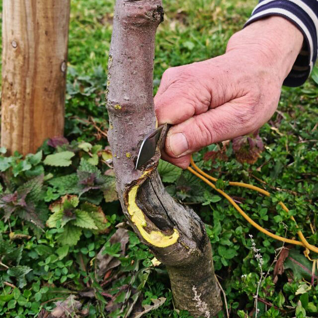 Um einen Schadbaum vielleicht noch zu retten, regt der Baumwart mit einer speziellen Technik die Bildung von Narbengewebe um das Totholz am Stamm herum an